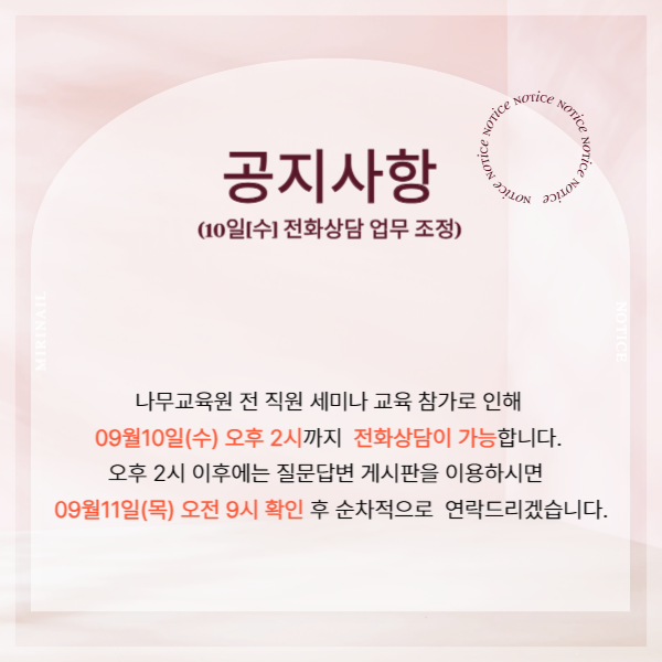 9월10일(수) 세미나 교육 참가로 인한 업무조정